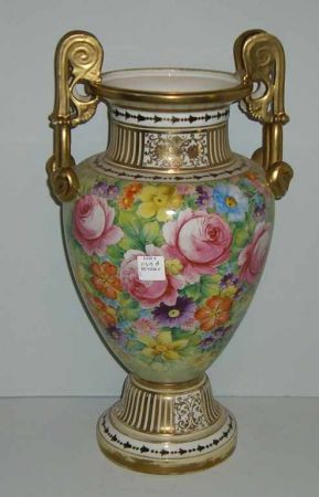 4446 Nippon Outstanding Bolted Urn w/Pastel Floral Decoration, Double Handled