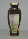 4447 Nippon Vase w/Floral Woodland Scenic in Pastel Colors, Black and Gold Decorated