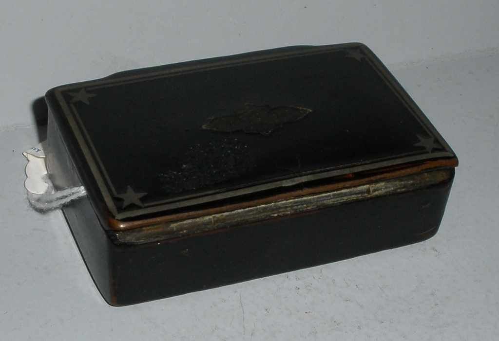 Gutta Percha snuff box with pewter inlay - 2" length x 1 5/8" width Gutta Percha snuff box with pewter inlay - 2" length x 1 5/8" width