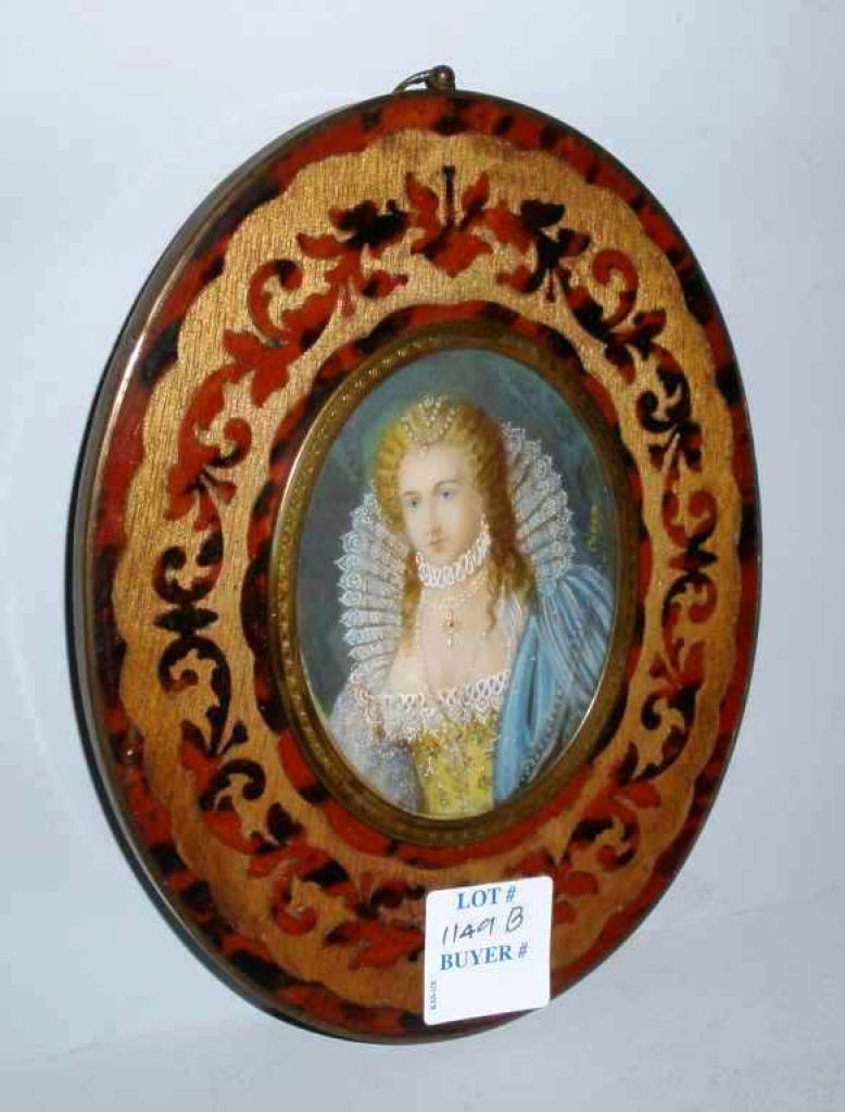Miniature painting on tortoise shell lacquered frame - 5" wide by 7" tall Miniature painting on tortoise shell lacquered frame - 5" wide by 7" tall