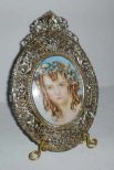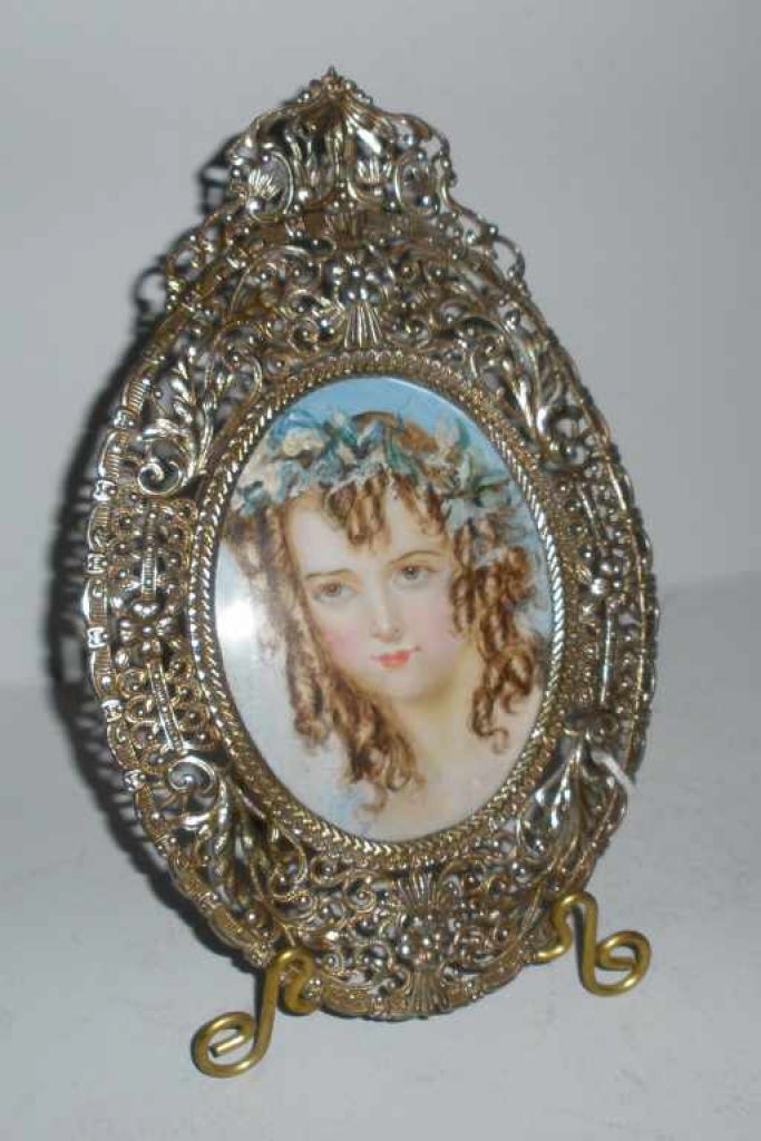 Miniature painting of Victorian lady in pierced frame - 4" wide by 6" tall Miniature painting of Victorian lady in pierced frame - 4" wide by 6" tall