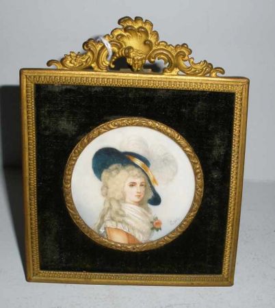 Miniature painting Edwardian lady in gilt frame - 3" wide by 4" tall Miniature painting Edwardian lady in gilt frame - 3" wide by 4" tall