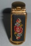 4472 Gold Tone Lipstick Case with Needlepoint Front and Flip Mirror Marked Brevete Paris