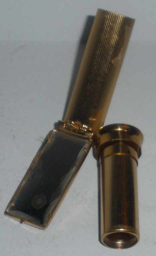 Gold tone lipstick case with needlepoint front and flip mirror marked Brevete Paris. 2 1/4" long Gold tone lipstick case with needlepoint front and flip mirror marked Brevete Paris. 2 1/4" long