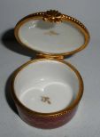 4487 Small Round Limoges Covered Hinged Box Rose Colored with Floral Decorations