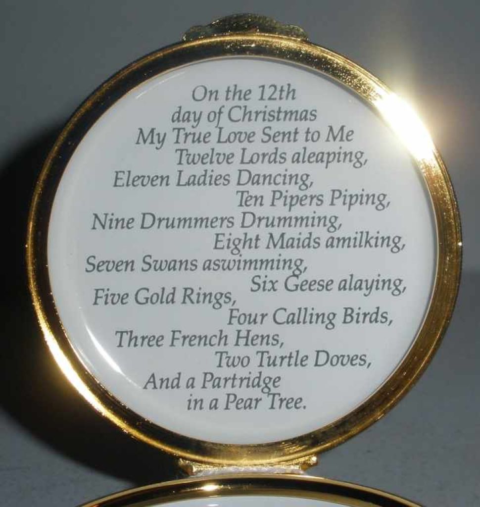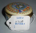 Round Staffordshire low covered box with Christmas decorations. 2 1/4" diameter x 1 1/4" tall Round Staffordshire low covered box with Christmas decorations. 2 1/4" diameter x 1 1/4" tall