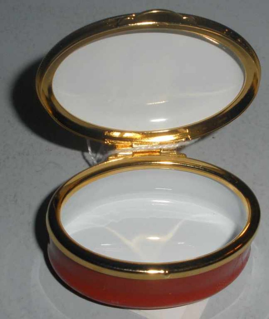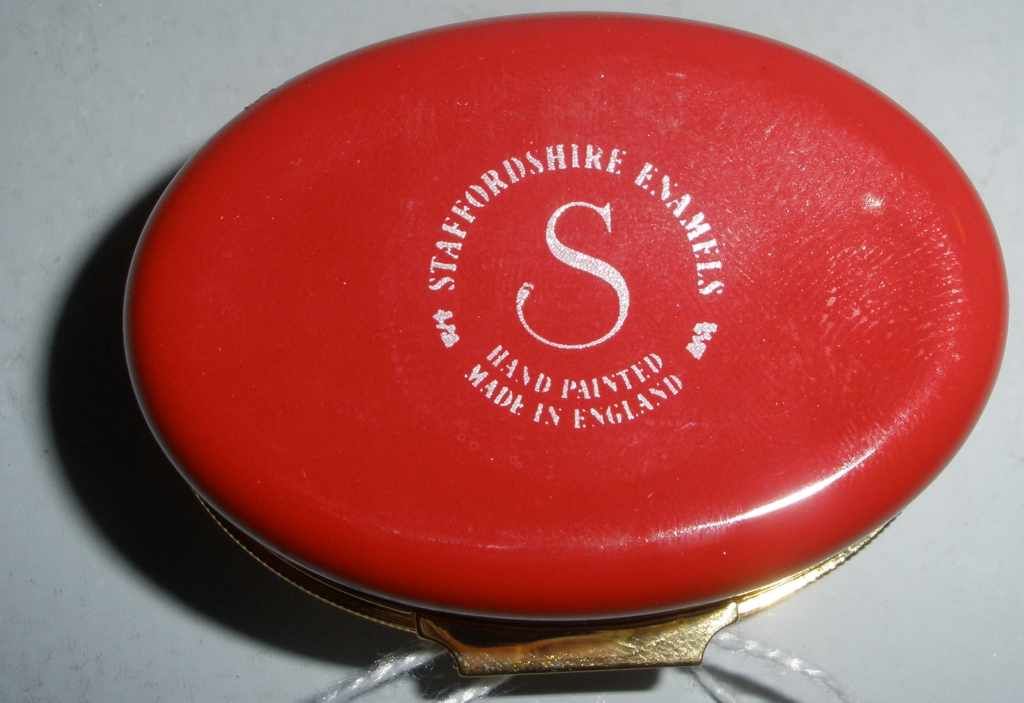 Staffordshire Enameled Oval Covered Box - 1 1/2" width x 2" length x 1" height Staffordshire Enameled Oval Covered Box - 1 1/2" width x 2" length x 1" height