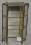 4521 Small Display Case with Brass Frame Glass Shelves Mirrored Back Ball Feet