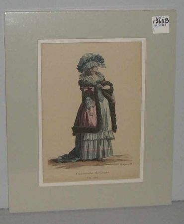 Matted print "Franzosische Modedame Um 1786" - woman with large blue hat - 10" wide by 12" tall Matted print "Franzosische Modedame Um 1786" - woman with large blue hat - 10" wide by 12" tall