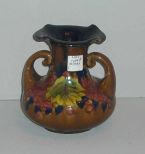 4581 Rare Multi Colored Leaf Decorated Flared Top Double Handle Vase Made In Japan