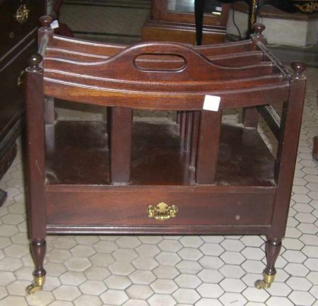 Mahogany Canterbury w/Casters & Spindle Top. Used for Music. Now often used for magazines. Mahogany Canterbury w/Casters & Spindle Top. Used for Music. Now often used for magazines.