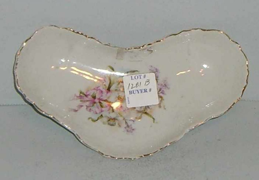 Bone Dish w/Pale Purple Floral Decoration - 7 1/8" across Bone Dish w/Pale Purple Floral Decoration - 7 1/8" across