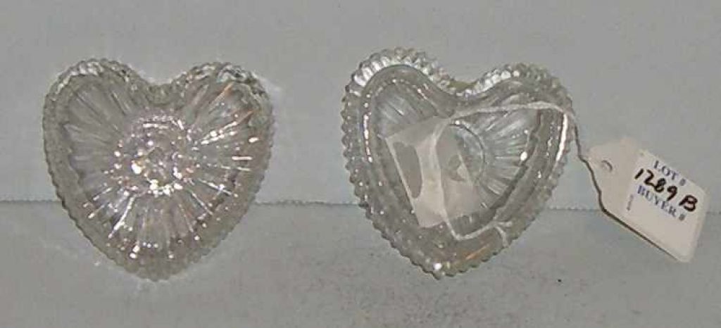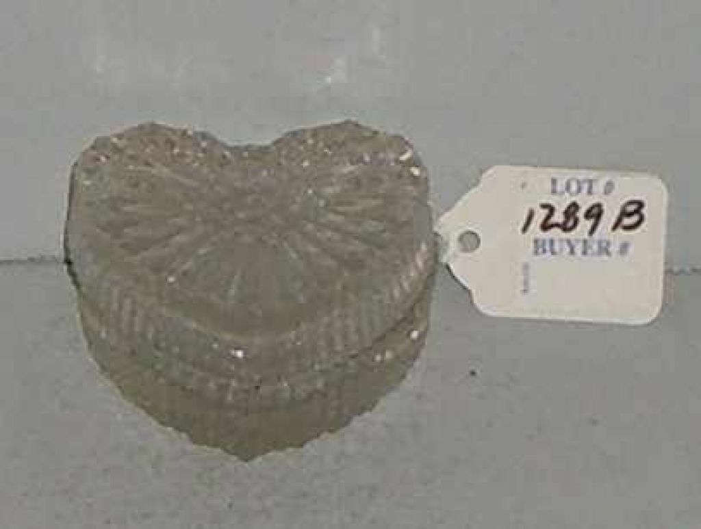 Small Pressed Glass Heart Shaped Box - 2 5/8" across x 2 1/2" wide Small Pressed Glass Heart Shaped Box - 2 5/8" across x 2 1/2" wide