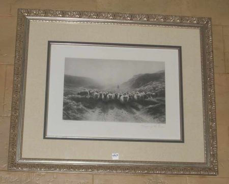 Silvered Framed Print of Sheep "Leaving the Hills" by Farquharson - 33 7/8" Wide by 27 3/4" Tall Silvered Framed Print of Sheep "Leaving the Hills" by Farquharson - 33 7/8" Wide by 27 3/4" Tall