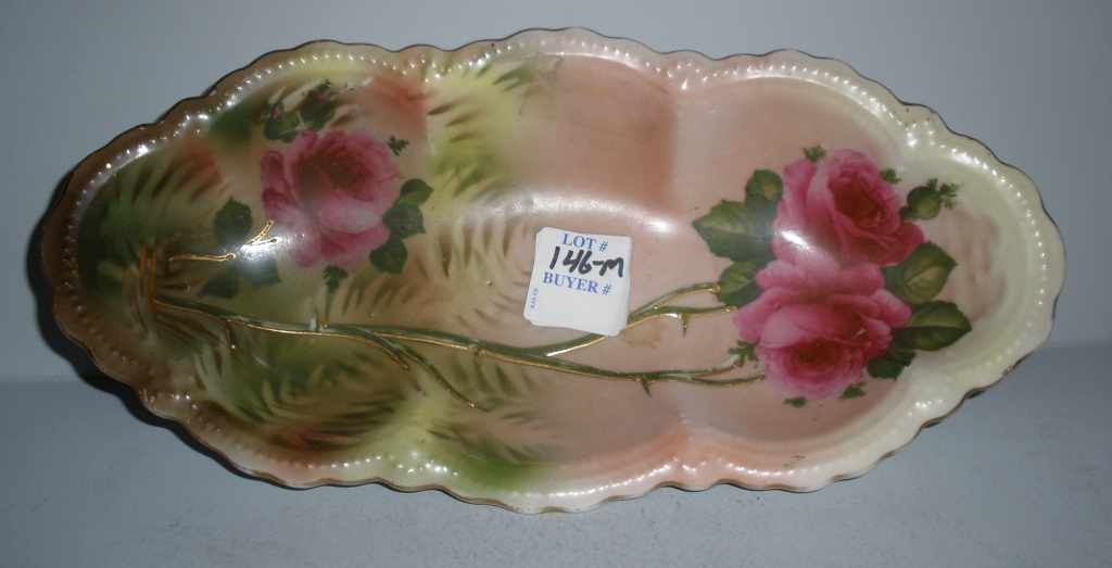 Leuchtensurg Germany Hand Painted Relish Dish with Roses Leuchtensurg Germany Hand Painted Relish Dish with Roses