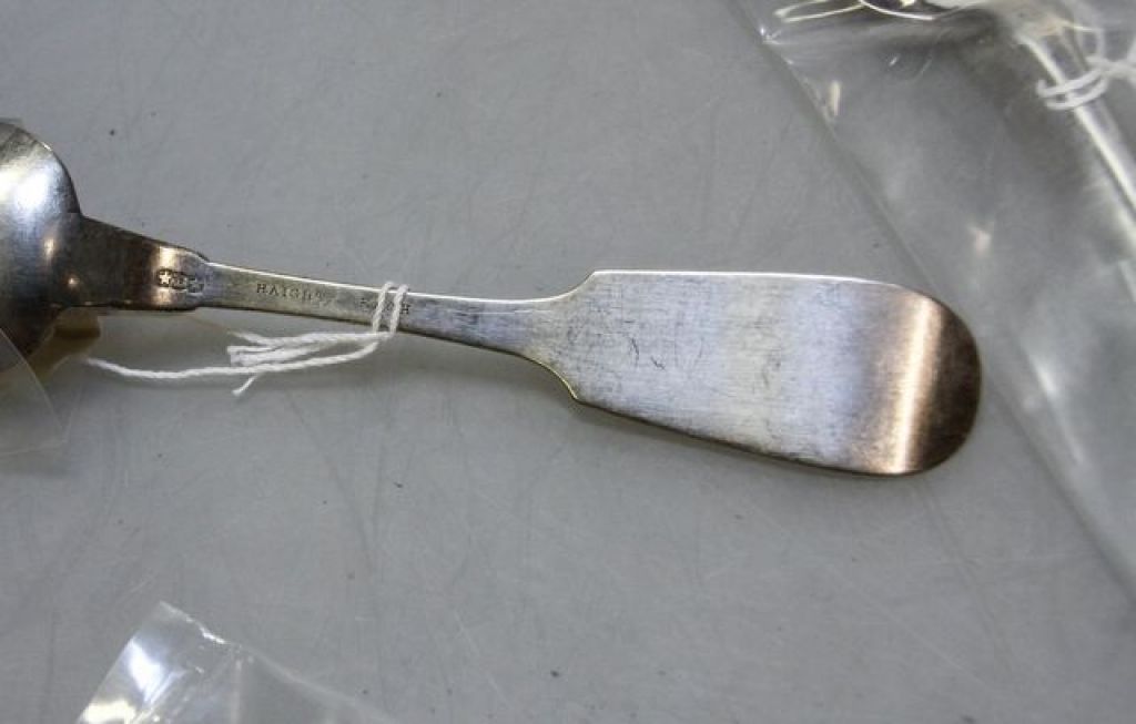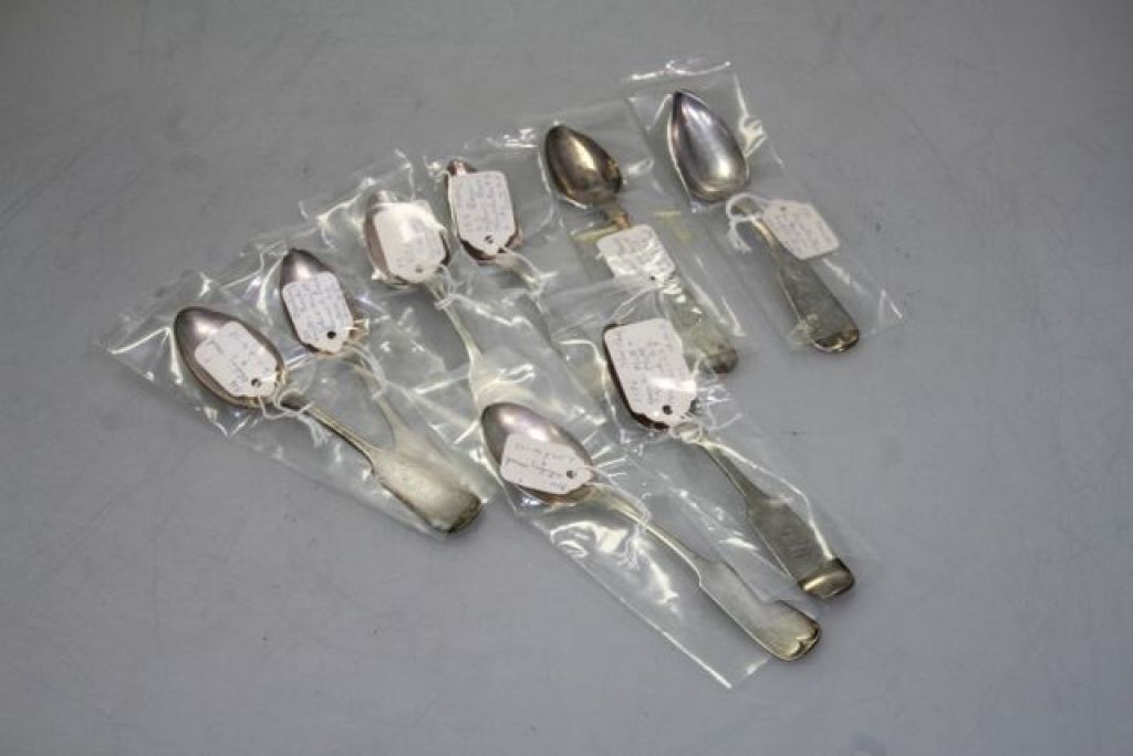 Lot of six early 1800's coin silver spoons & two sterling spoons Lot of six early 1800's coin silver spoons & two sterling spoons