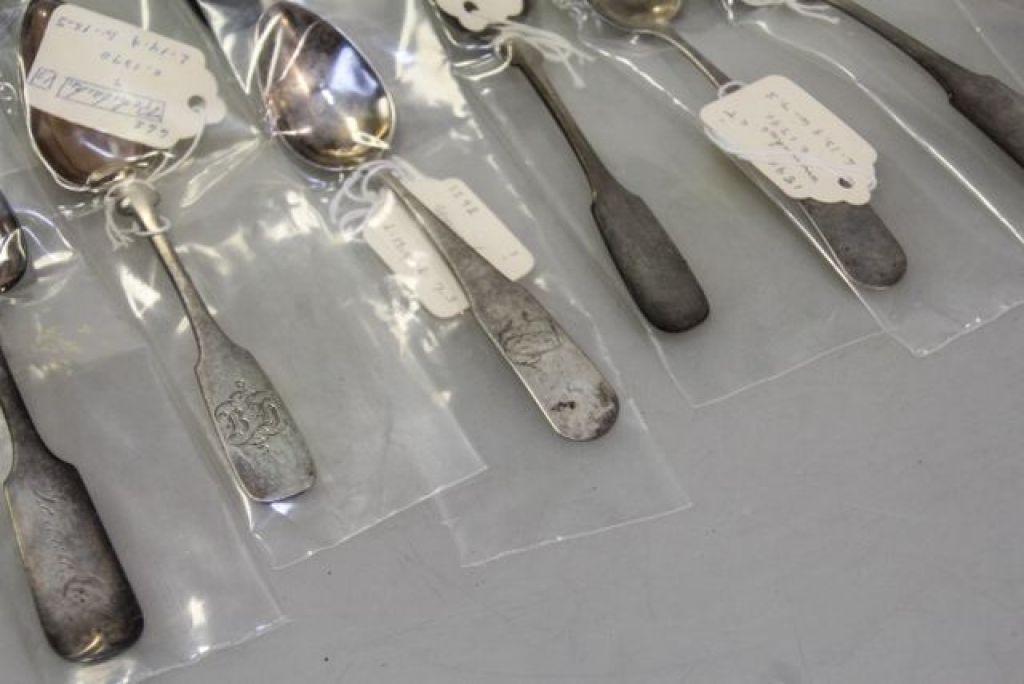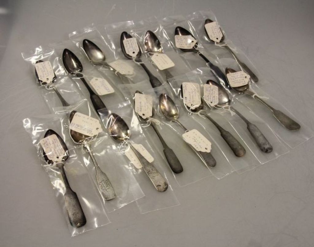 Nine N.Y. coin silver spoons & six unmarked coin silver spoons Nine N.Y. coin silver spoons & six unmarked coin silver spoons