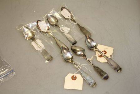 Two coin silver teaspoons, four New York coin silver spoons & one Pennsylvania coin silver spoon Two coin silver teaspoons, four New York coin silver spoons & one Pennsylvania coin silver spoon