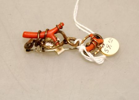 Pair of antique Victorian wrapped branch coral pins Pair of antique Victorian wrapped branch coral pins