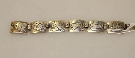 Heavy Taxco sterling bracelet with applied motifs Heavy Taxco sterling bracelet with applied motifs