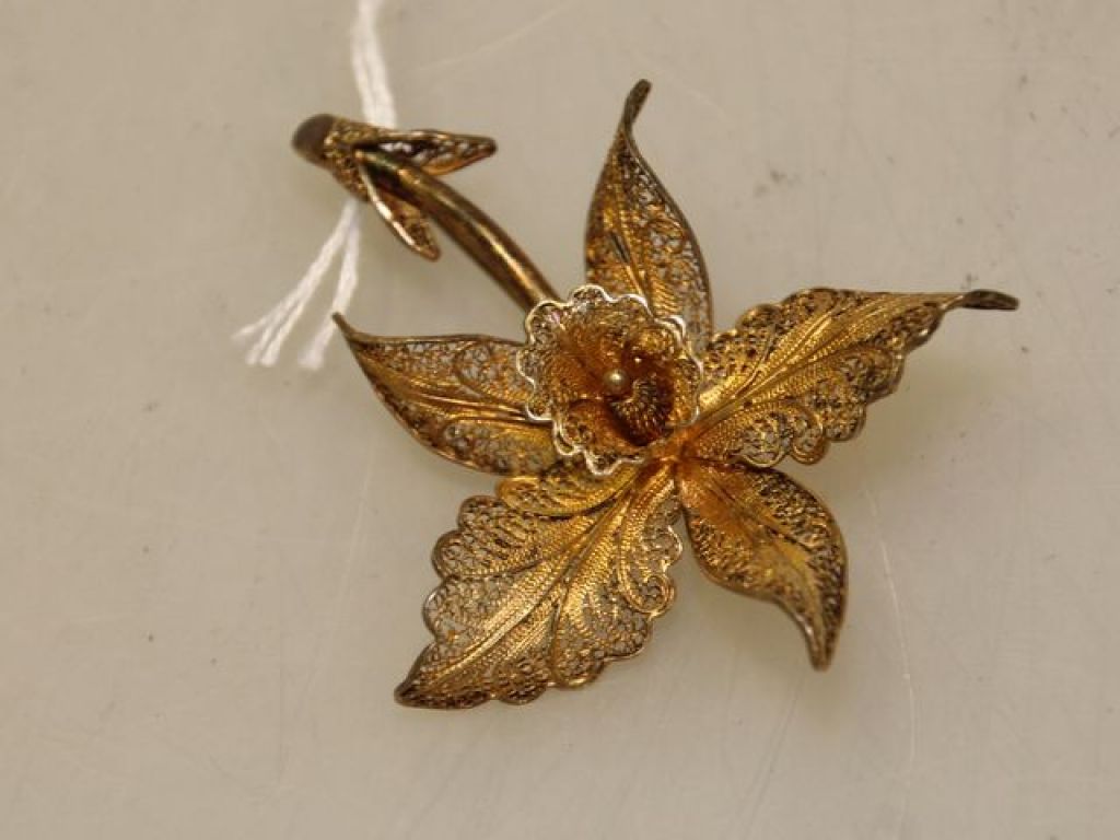 Sterling silver filigree flower with gilt marked "CK" Sterling silver filigree flower with gilt marked "CK"