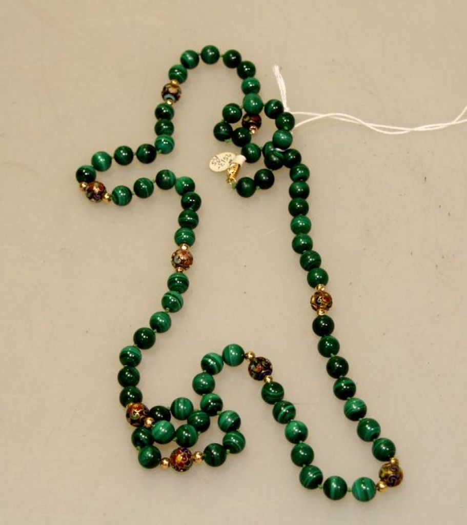 14k gold Malachite necklace with Cloisonne 14k gold Malachite necklace with Cloisonne
