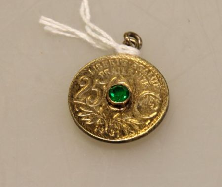 Nettie Rosenstein coin charm with green rhinestone Nettie Rosenstein coin charm with green rhinestone