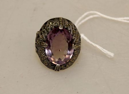 5558 Sterling Purple Crystal & Marcasite Ring