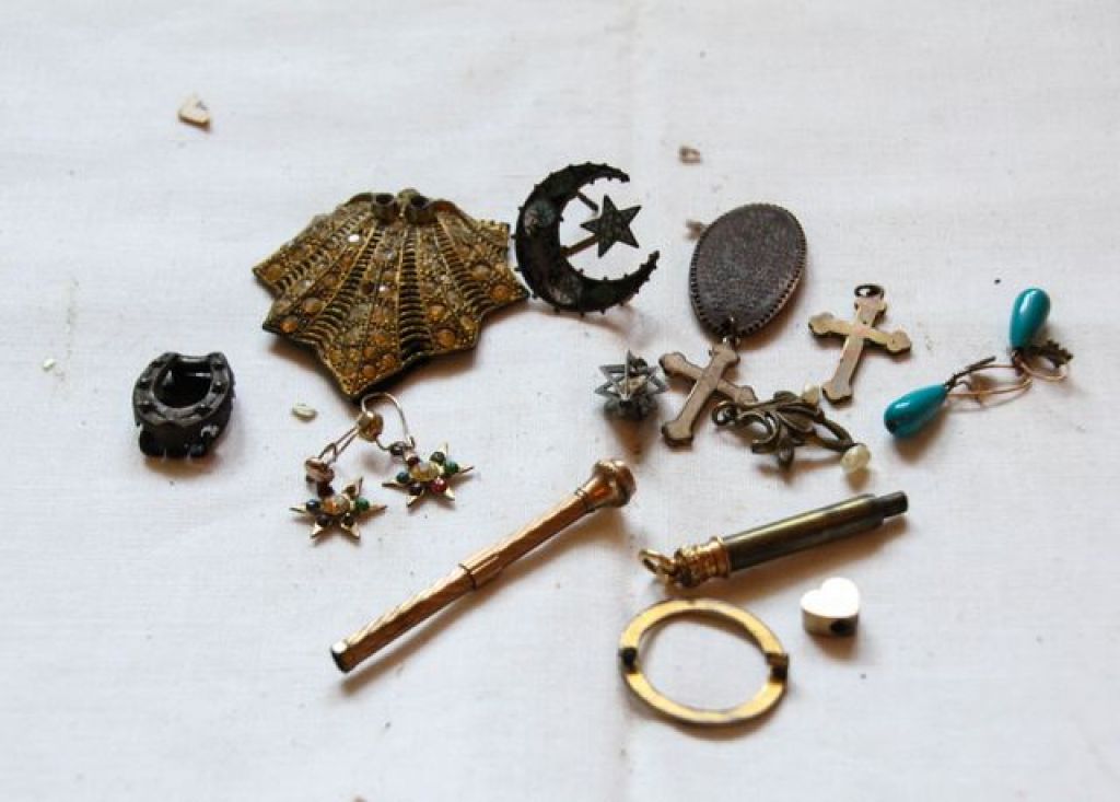 Lot of Victorian small items including shoe buckles, earrings, retractable pen parts, crosses, slides, and odd jewelry pieces. There are condition issues. Lot of Victorian small items including shoe buckles, earrings, retractable pen parts, crosses, slides, and odd jewelry pieces. There are condition issues.