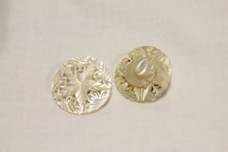 Two hand carved mother of pearl pins made in israel. Two hand carved mother of pearl pins made in israel.