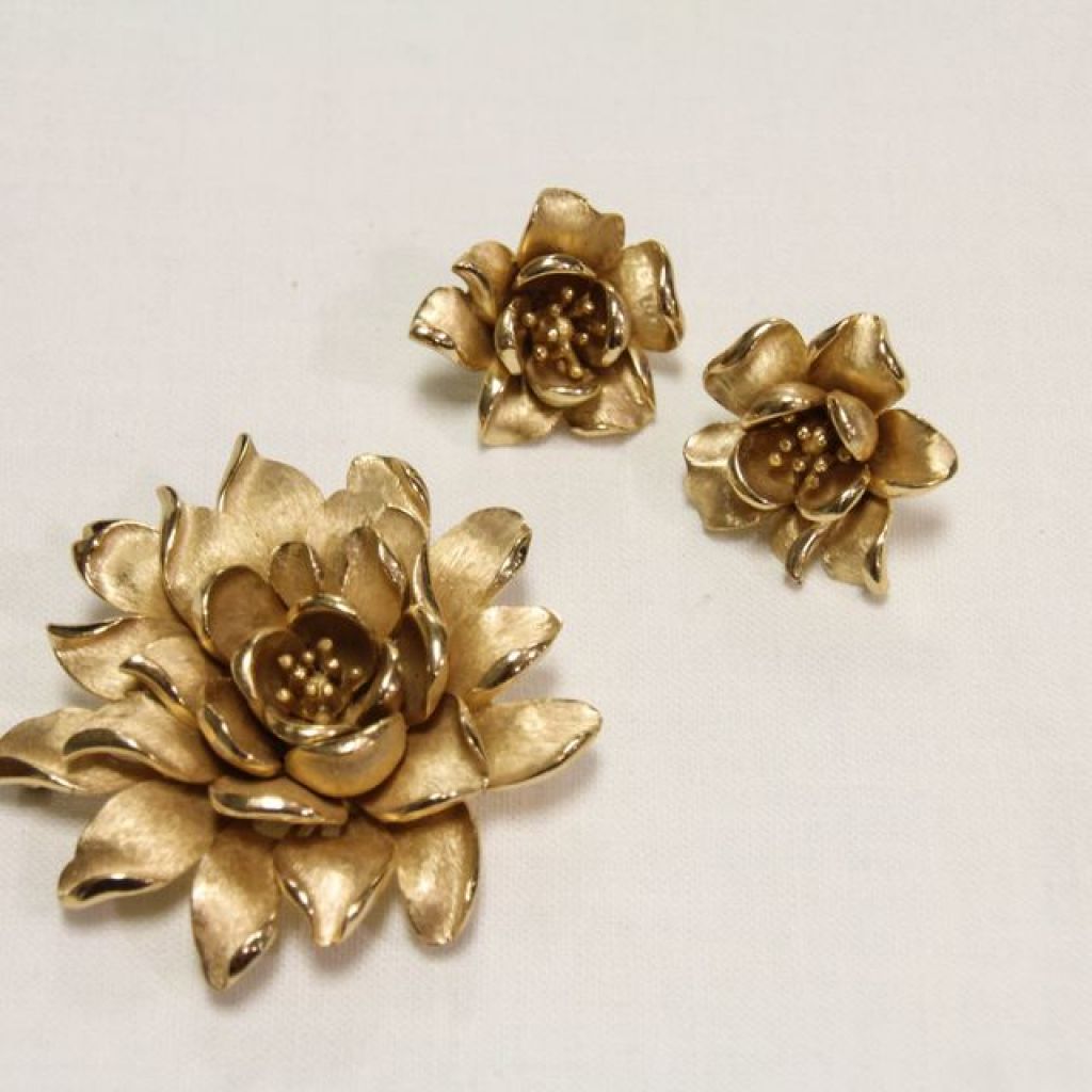 9847 Trifari Goldtone Large Floral Brooch and Earrings