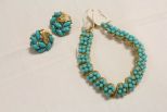 9852 Crown Trifari Faux Turquoise Beaded Bracelet and Earrings