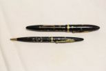 9938 Sheaffer Lifetime Lever Fill Balance Fountain Pen and Pencil In Ebonized Radite
