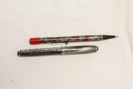 Esterbrook grey lever fill fountain pen. Black jewel cap. Dried bladder. Gray and Red Radite eversharpe pencil. Esterbrook grey lever fill fountain pen. Black jewel cap. Dried bladder. Gray and Red Radite eversharpe pencil.