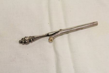 Antique sterling handled hair curler with no maker's mark. Antique sterling handled hair curler with no maker's mark.