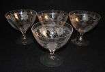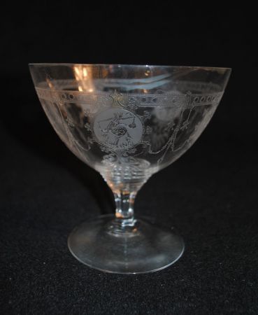 Set of 4 Heisey #3350 "Wabash" 10oz 5"h grapefruit stems w/#439 "Pied Piper" etching, signed/stem Set of 4 Heisey #3350 "Wabash" 10oz 5"h grapefruit stems w/#439 "Pied Piper" etching, signed/stem
