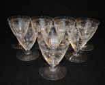 Set of 8 Heisey #3350 "Wabash" 3 1/2"h oyster cocktails w/#439 "Pied Piper" etching, signed/stem Set of 8 Heisey #3350 "Wabash" 3 1/2"h oyster cocktails w/#439 "Pied Piper" etching, signed/stem