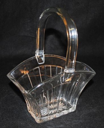 Heisey #465 Recessed Panel Basket, signed w/1915 patent date, 9 3/4"h x 7 1/4"w, pinpoint speck nick to side edge. Heisey #465 Recessed Panel Basket, signed w/1915 patent date, 9 3/4"h x 7 1/4"w, pinpoint speck nick to side edge.