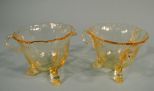 Heisey Sahara #1401 "Empress" dolphin-footed creamer and sugar, both signed, small chip to underside dolphin foot of creamer Heisey Sahara #1401 "Empress" dolphin-footed creamer and sugar, both signed, small chip to underside dolphin foot of creamer