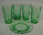 165 Set of 4 Heisey Moongleam "Twist" Soda Tumblers and Plate