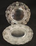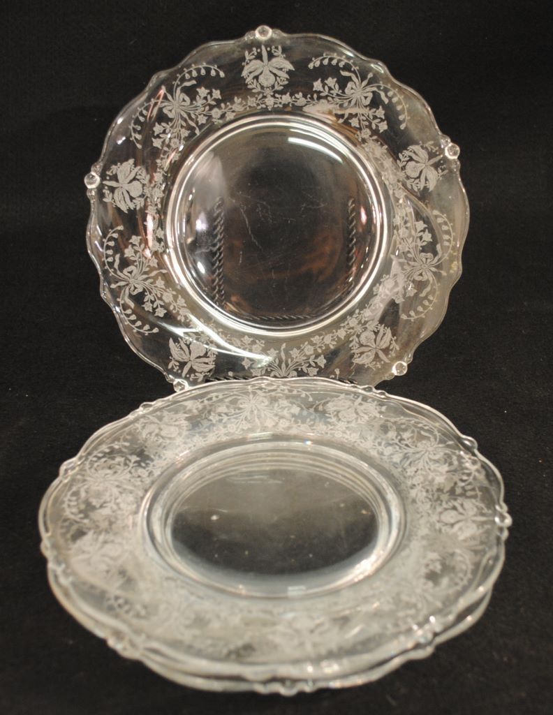Set of 4 Heisey Crystal "Orchid" 8 1/4" Salad Plates on Waverly blank, three w/ speck nicks to edge of underside base foot Set of 4 Heisey Crystal "Orchid" 8 1/4" Salad Plates on Waverly blank, three w/ speck nicks to edge of underside base foot