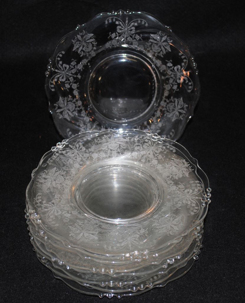 Set of 9 Heisey Crystal "Orchid" 7" dessert/tea plates on Waverly blank Set of 9 Heisey Crystal "Orchid" 7" dessert/tea plates on Waverly blank