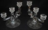 209 Pair Heisey Crystal "Orchid" Cascade 3-Lite Candlesticks