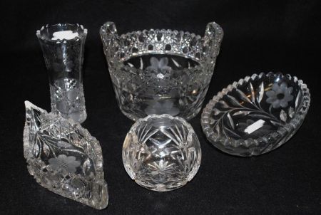 354 American Cut Glass Ice Bucket, Relish Canoe, Rose Bowl, etc