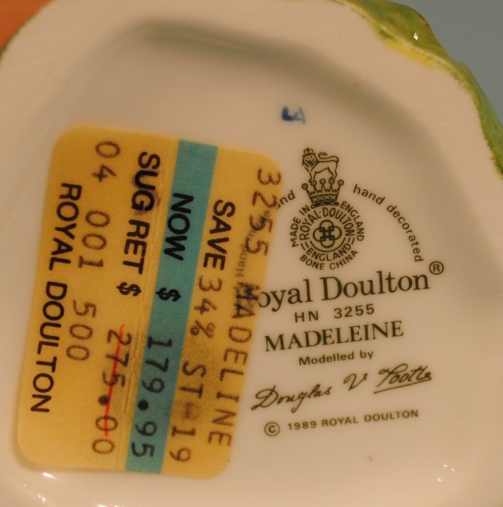 Royal Doulton HN 3255 "Madeline" Lady Figure, 8"h, c1989 Royal Doulton HN 3255 "Madeline" Lady Figure, 8"h, c1989