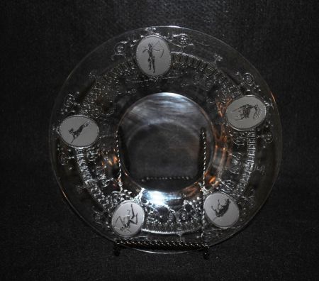Set of 8 Heisey crystal "Diana" 8 1/4" plates intricately engraved w/cartouches of the greek goddess and various animals Set of 8 Heisey crystal "Diana" 8 1/4" plates intricately engraved w/cartouches of the greek goddess and various animals