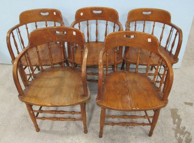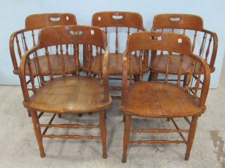625 Five Oak Bent Wood Barrel Chairs