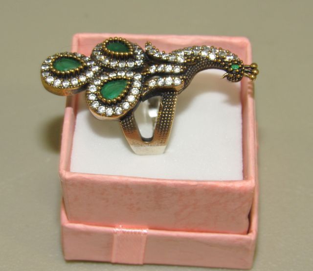 630 Unusual Marcacite and Green Stone Peacock Ring