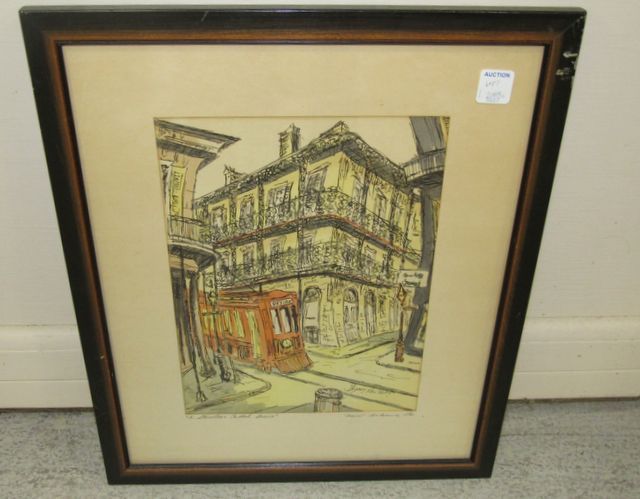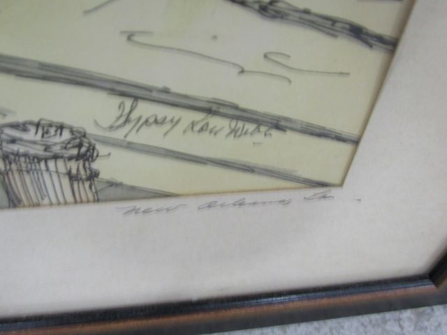 Framed drawing by Gypsy Lou Webb, New Orleans, 18"h., 15"w. Framed drawing by Gypsy Lou Webb, New Orleans, 18"h., 15"w.