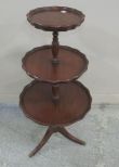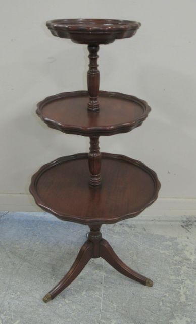 Mahogany Duncan Phyfe three tiered display stand, brass cap claw feet, 42"h. Mahogany Duncan Phyfe three tiered display stand, brass cap claw feet, 42"h.